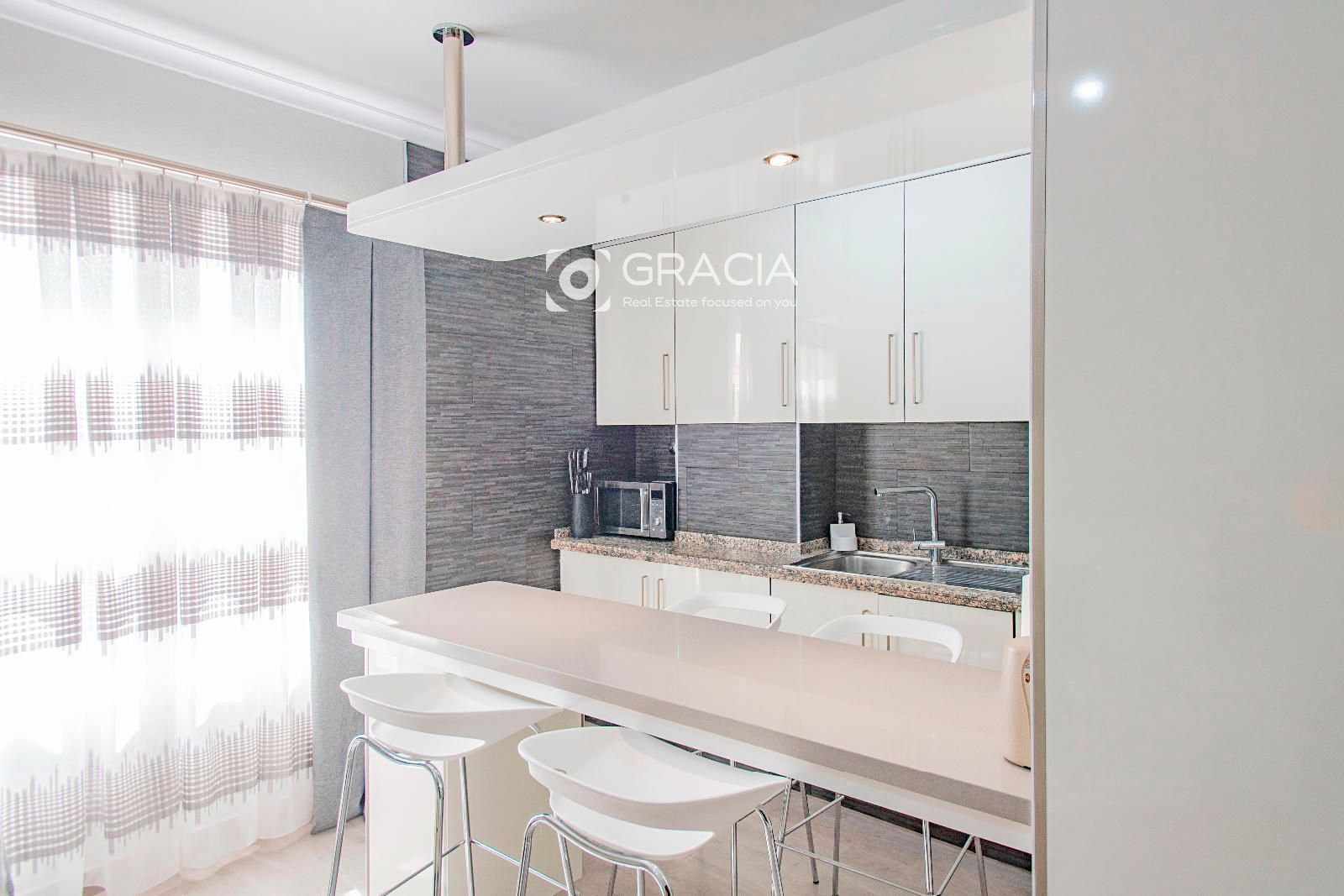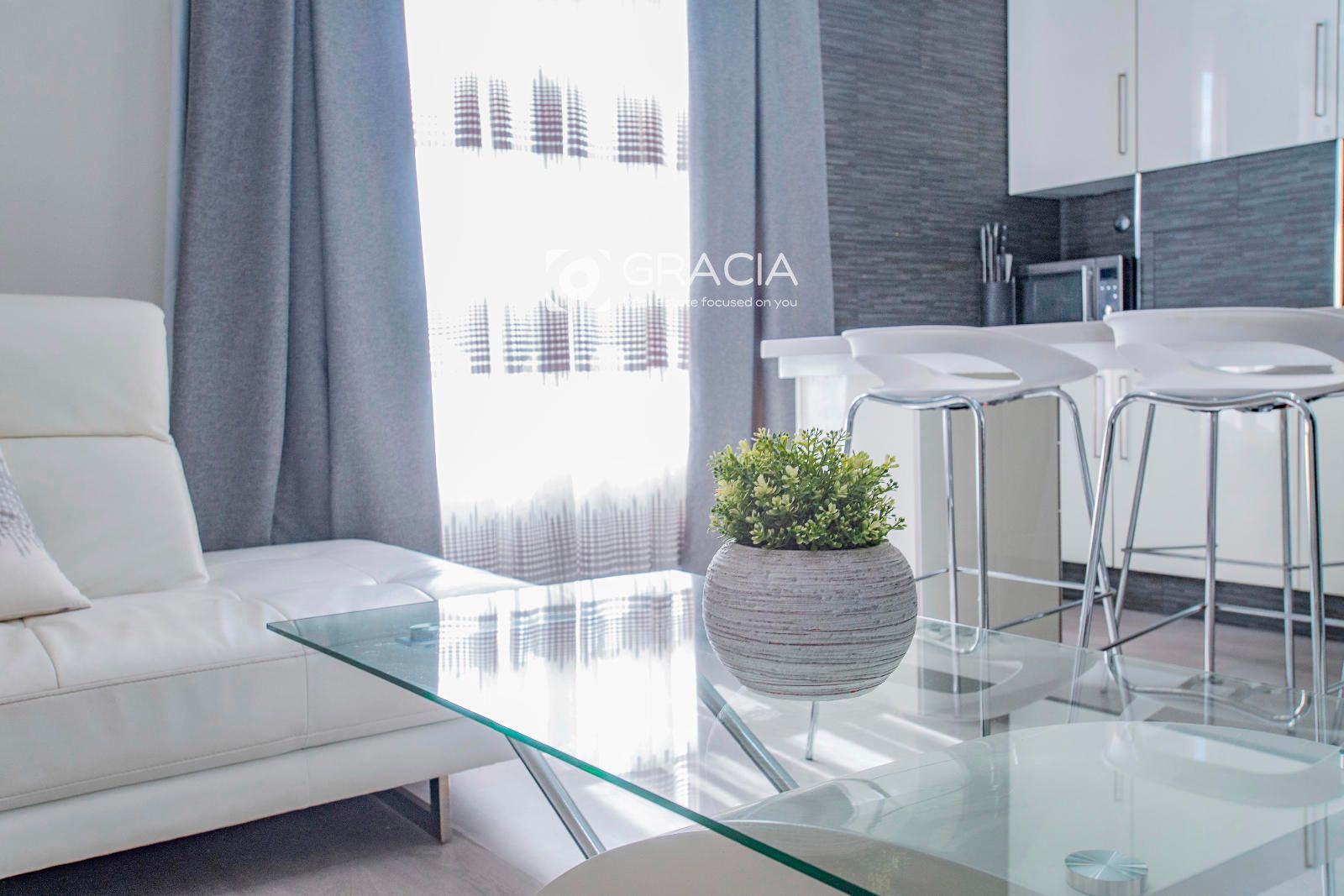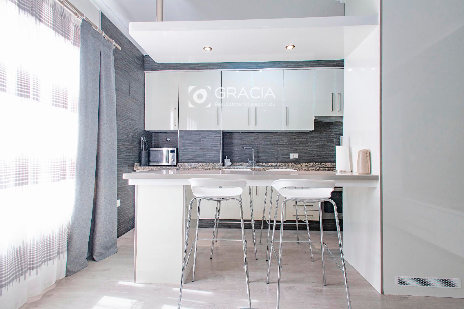 Zwei-Zimmer-Wohnung mit offener Küche und Bad, komplett renoviert und modern und funktionell eingerichtet. Parkplatz im Mietpreis inbegriffen.