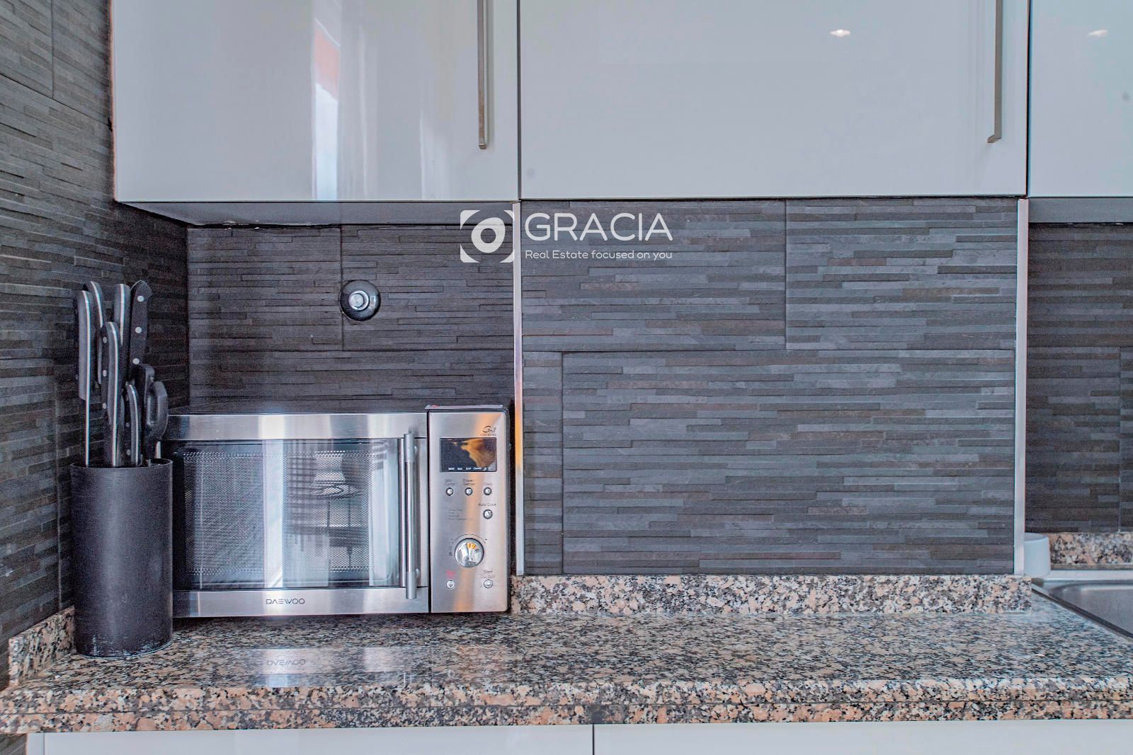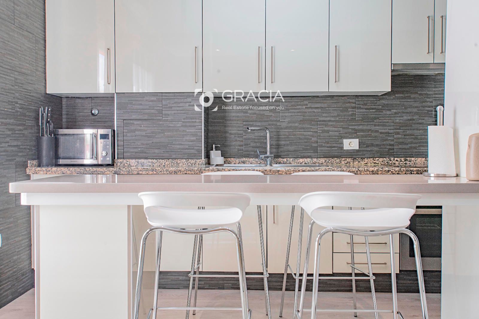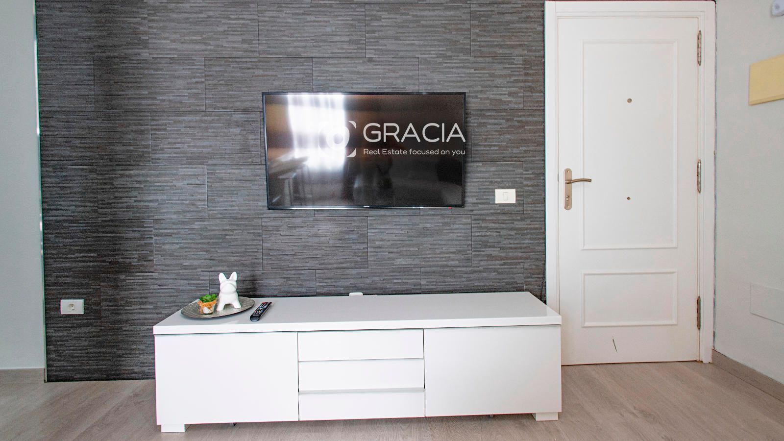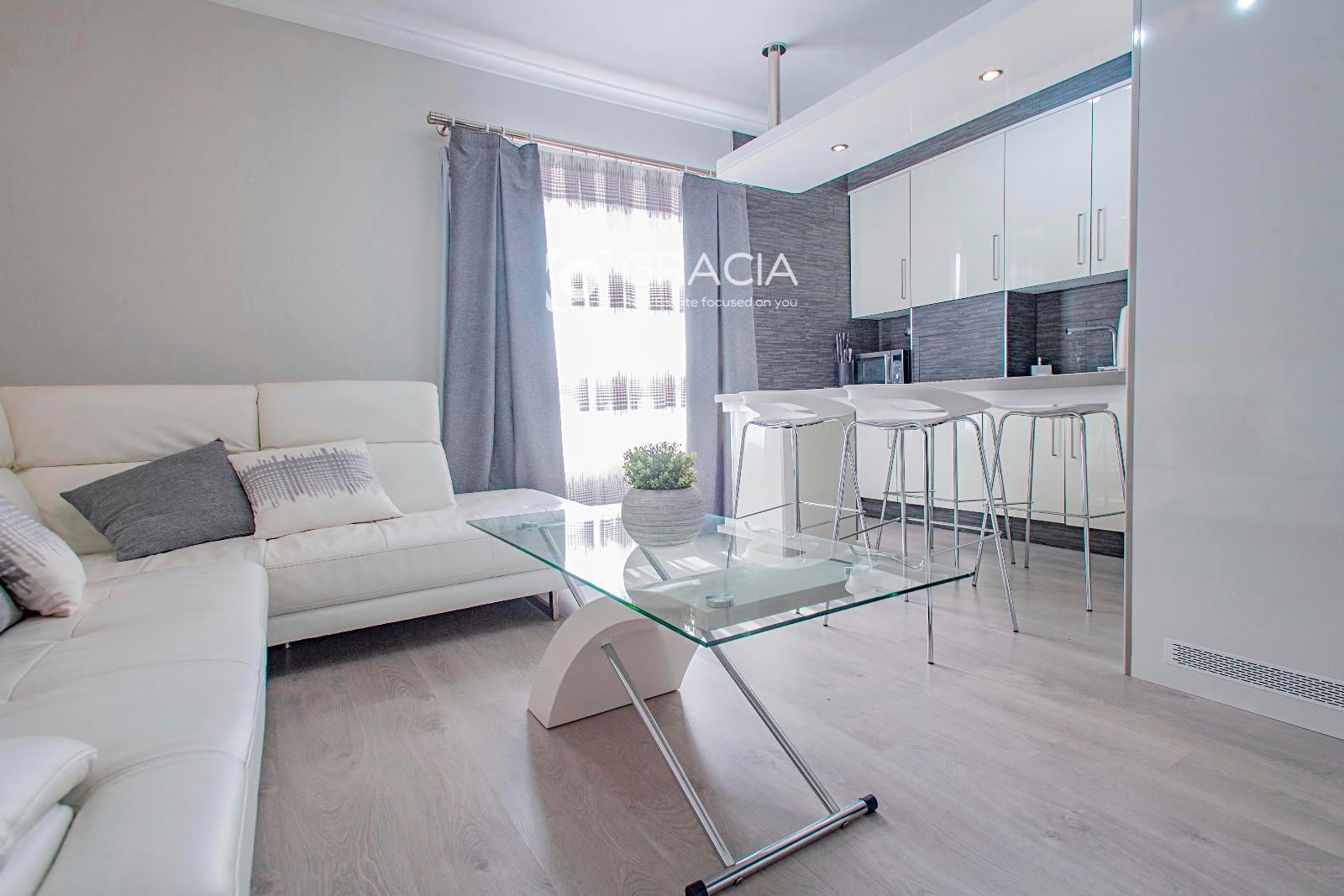 Zwei-Zimmer-Wohnung mit offener Küche und Bad, komplett renoviert und modern und funktionell eingerichtet. Parkplatz im Mietpreis inbegriffen.