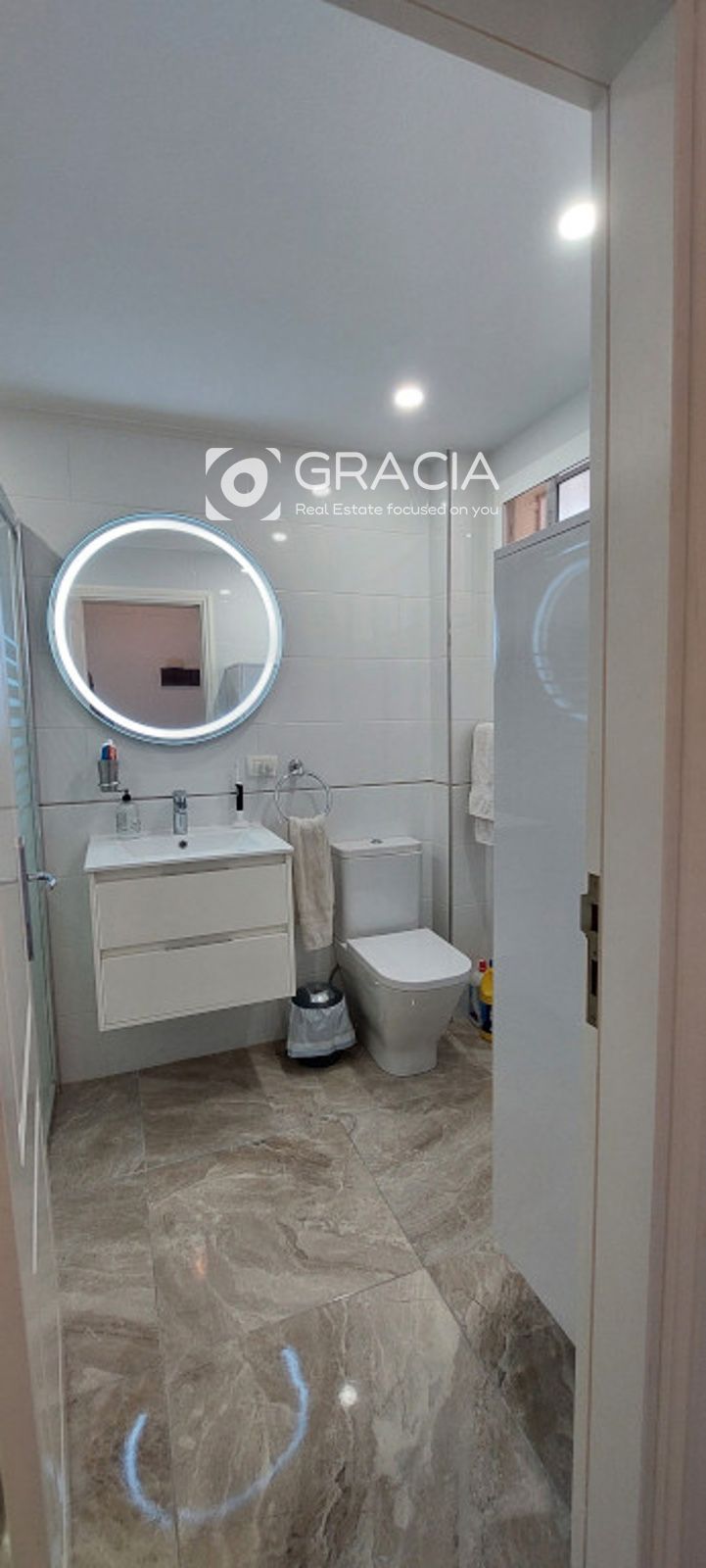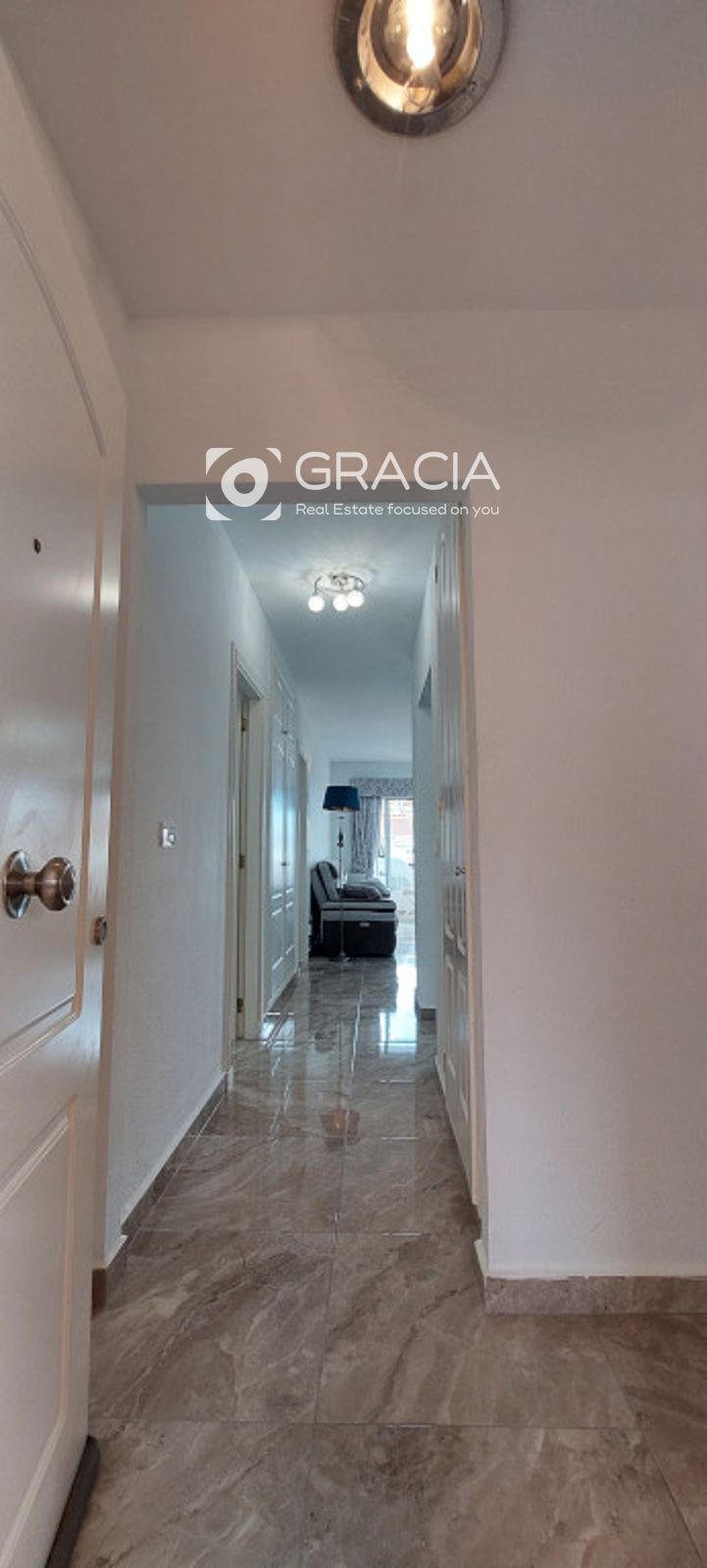 Apartamento de dos dormitorios, 2 baños , cocina americana abierta al salón-comedor. Cada dormitorio tiene armarios empotrados y en el pasillo hay otros dos armarios empotrados para almacenamiento.