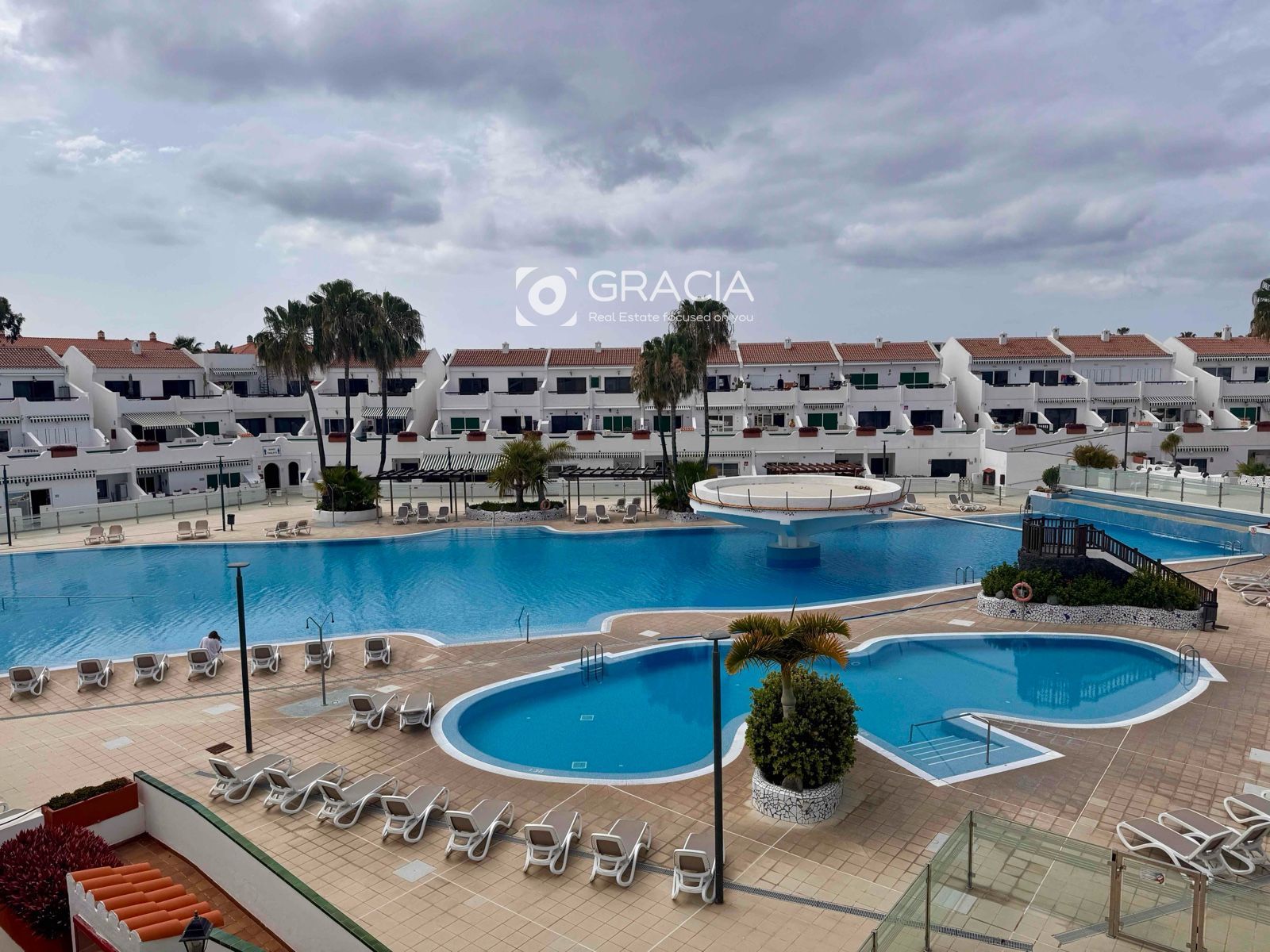 El piso está situado en el complejo PARQUE DON JOSÉ, cerca de restaurantes y tiendas y el supermercado Hiper Dino ,por lo que se puede ir andando a todas partes. La playa de Montaña Amarilla está a pocos minutos caminando. El complejo cuenta con bellos jardines comunitarios y una gran piscina para adultos y otra infantil . Es un complejo muy bien mantenido, de los mejores de la zona, bonito y con privacidad.