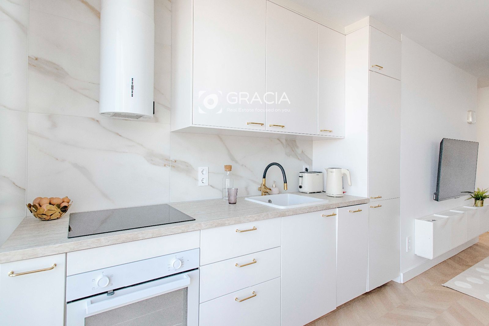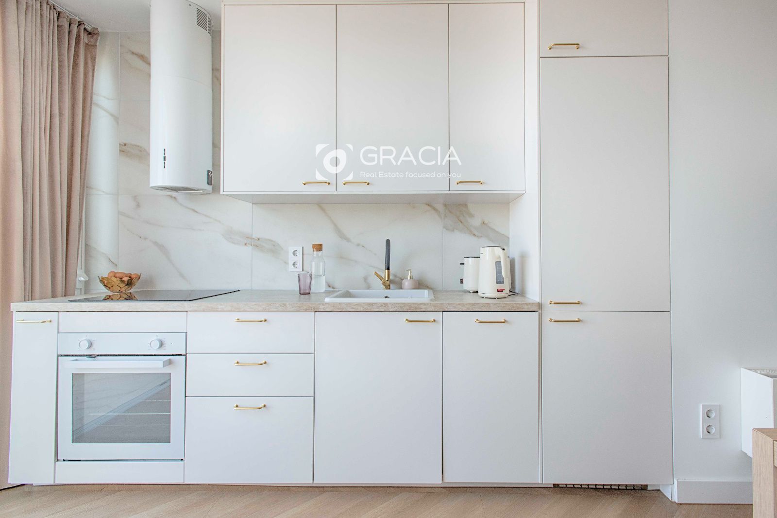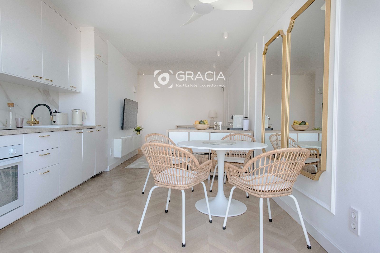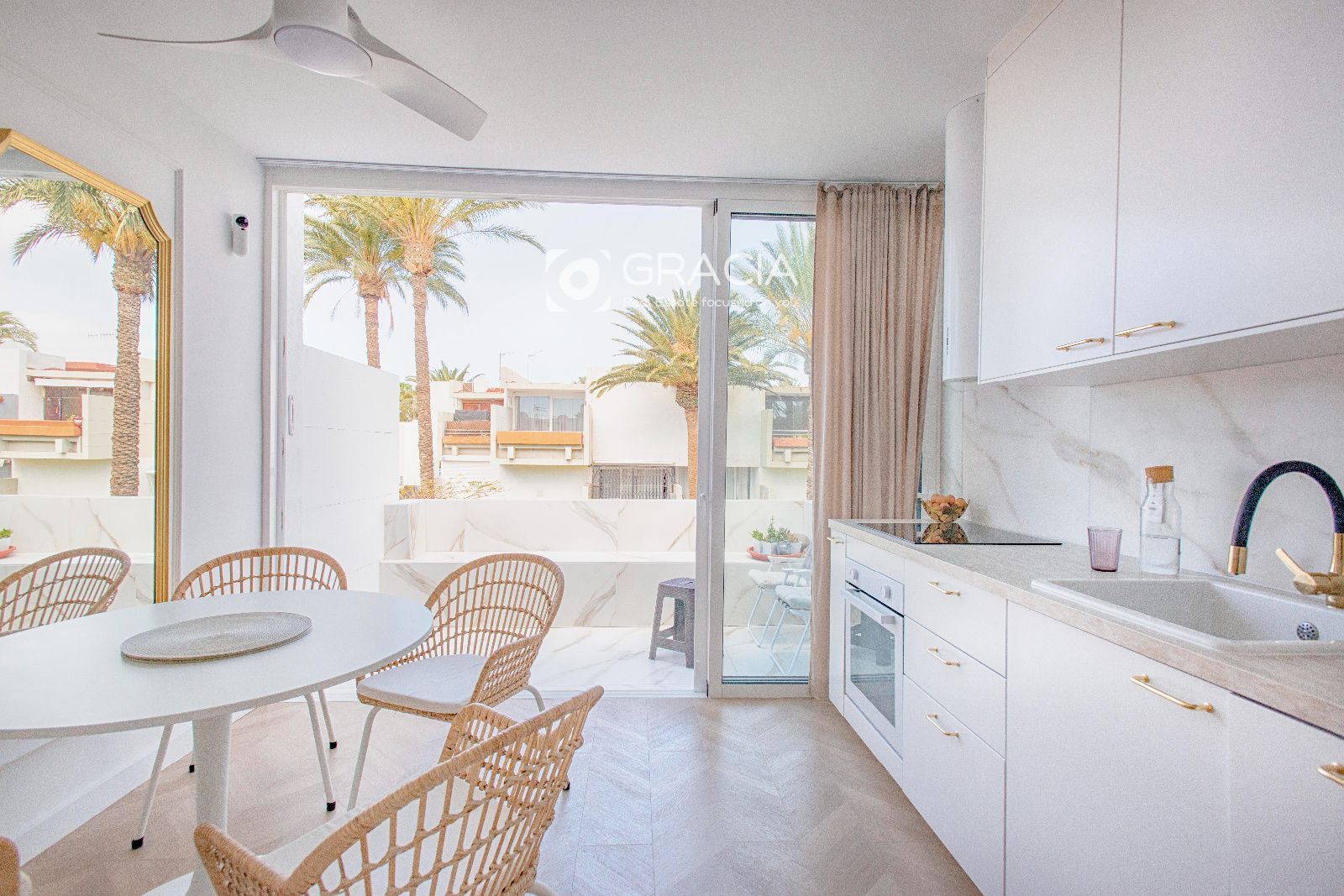 La cocina tiene todos los electrodomésticos panelados, lo que la hace visualmente organizada y estética. El grifo de la pila tiene sistema de Osmosis, para purificar el agua.