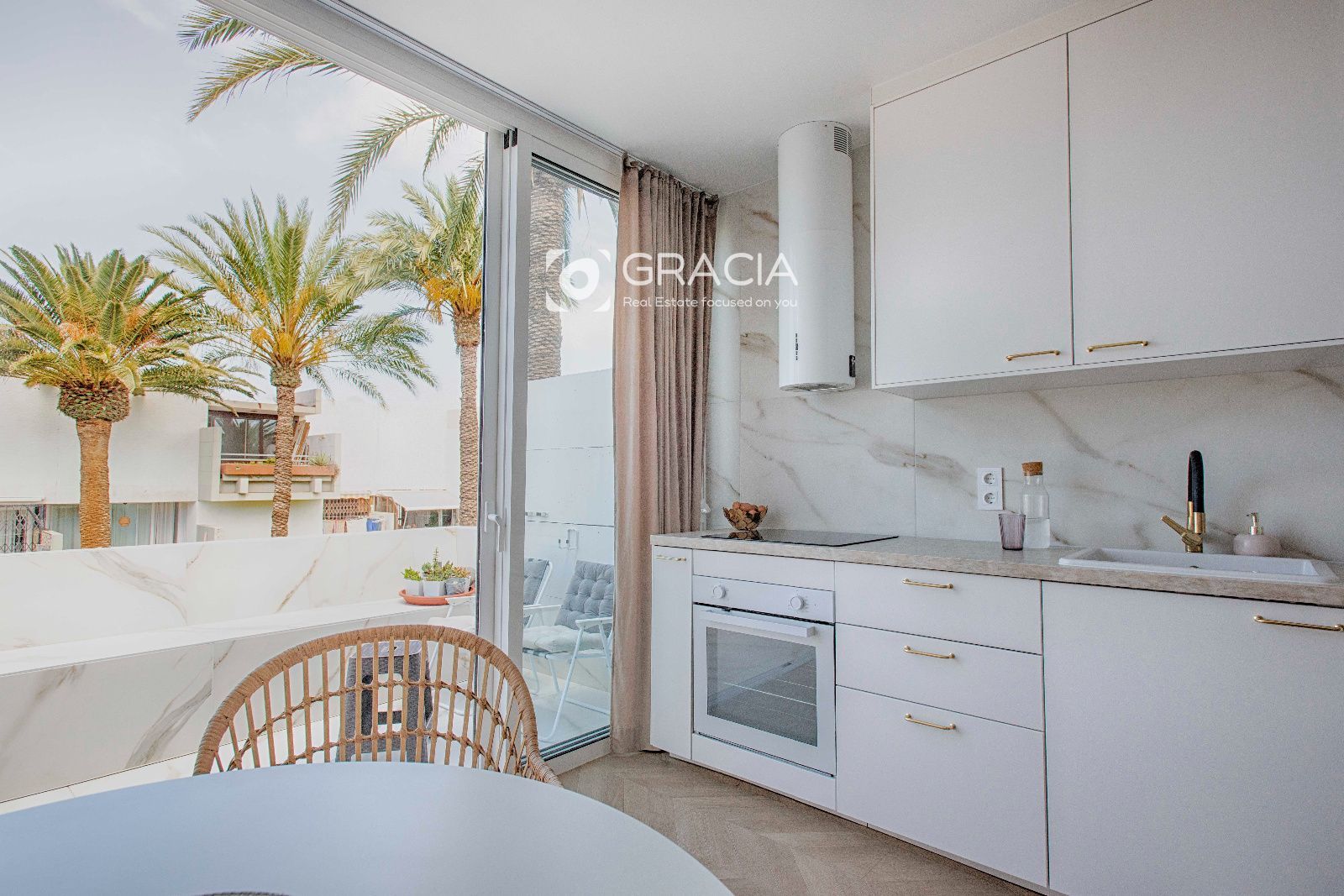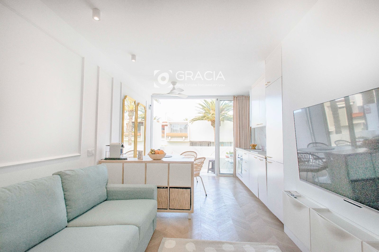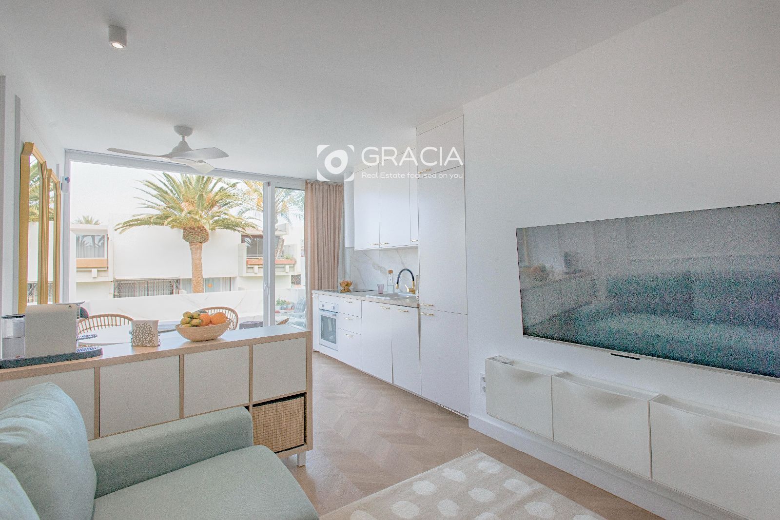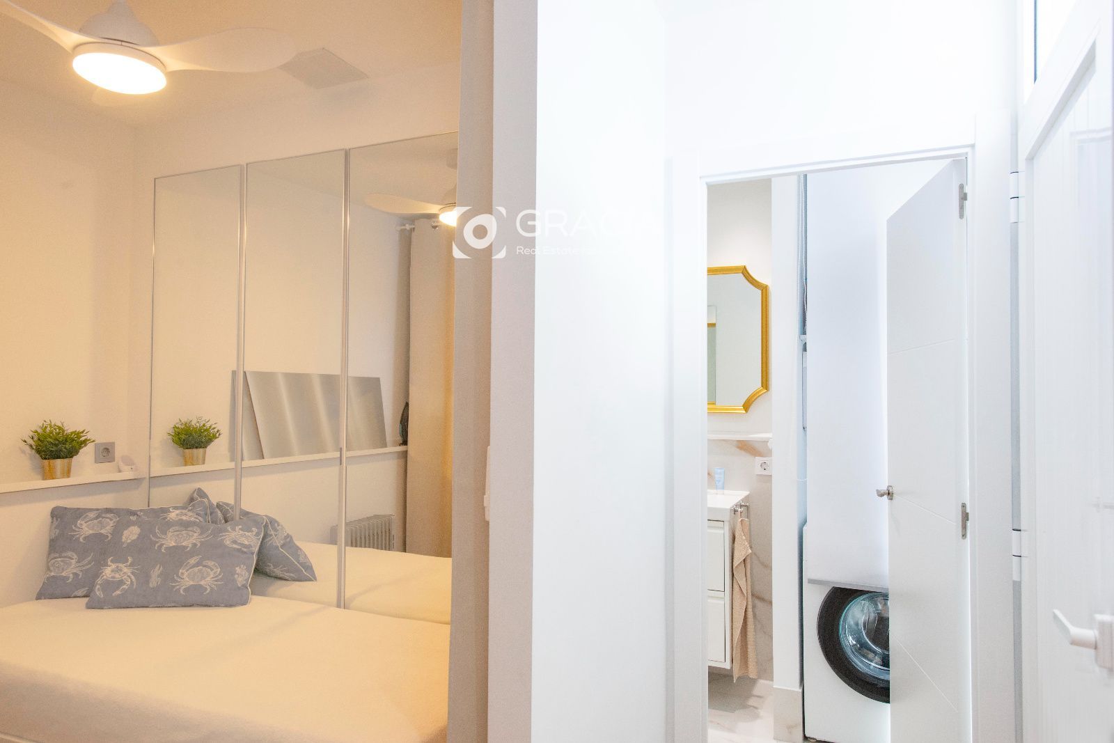El Apartamento consta de 1 dormitorio con armario amplio y funcional, un cuarto de baño con ducha con plato a nivel de suelo, espacio para lavadora y calefactor y ventana para ventilación y luminosidad. Amplio salón comedor con terraza exterior, bien separado en dos espacios diferentes, con muchisima luz y una decoración moderna y práctica.