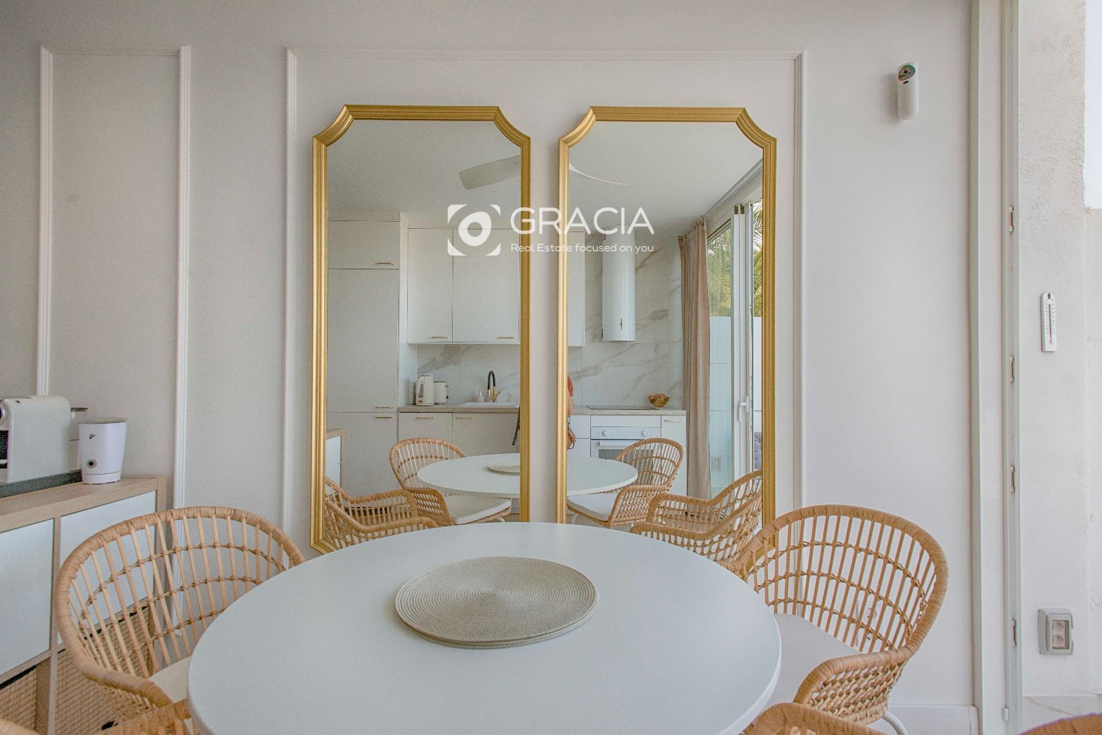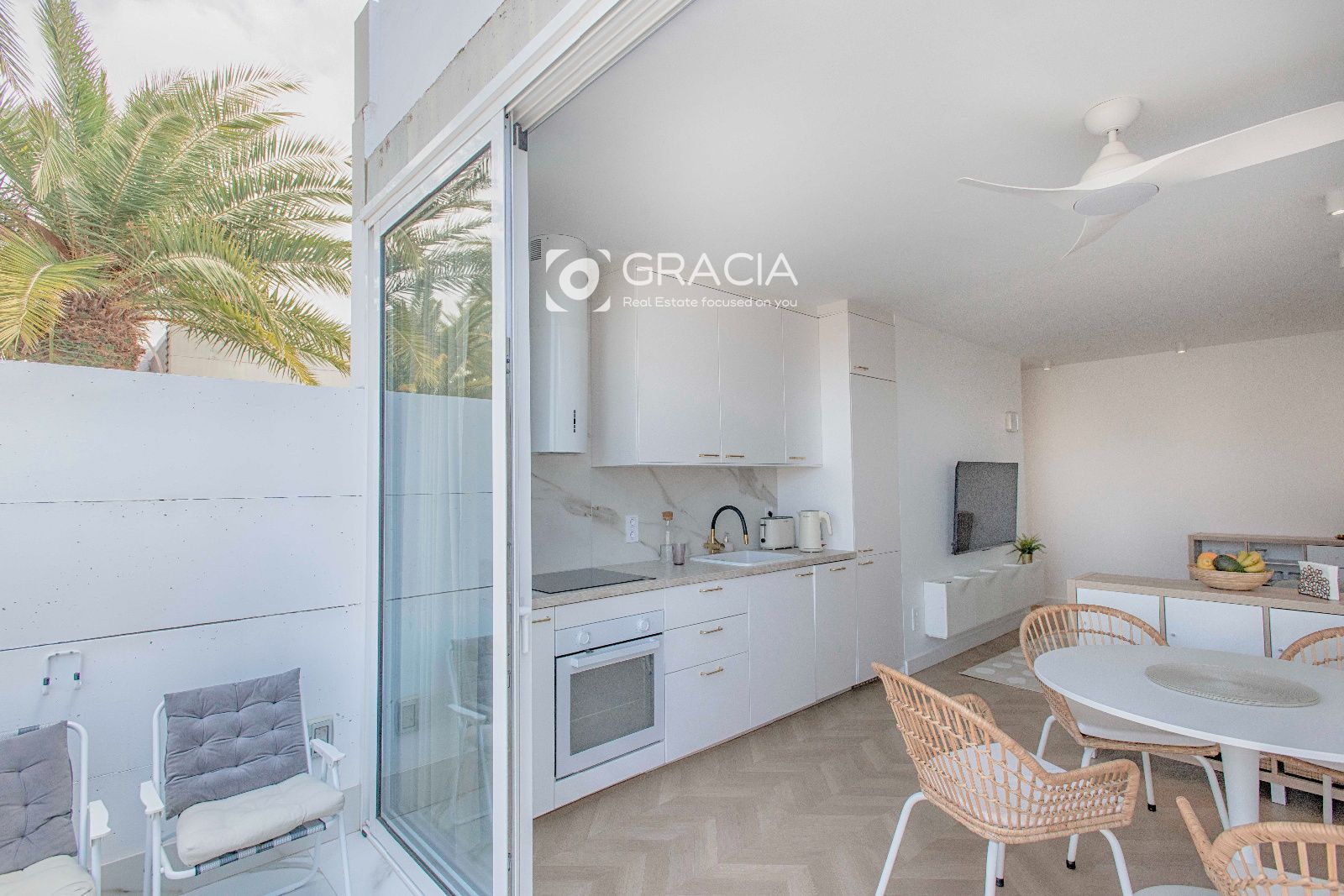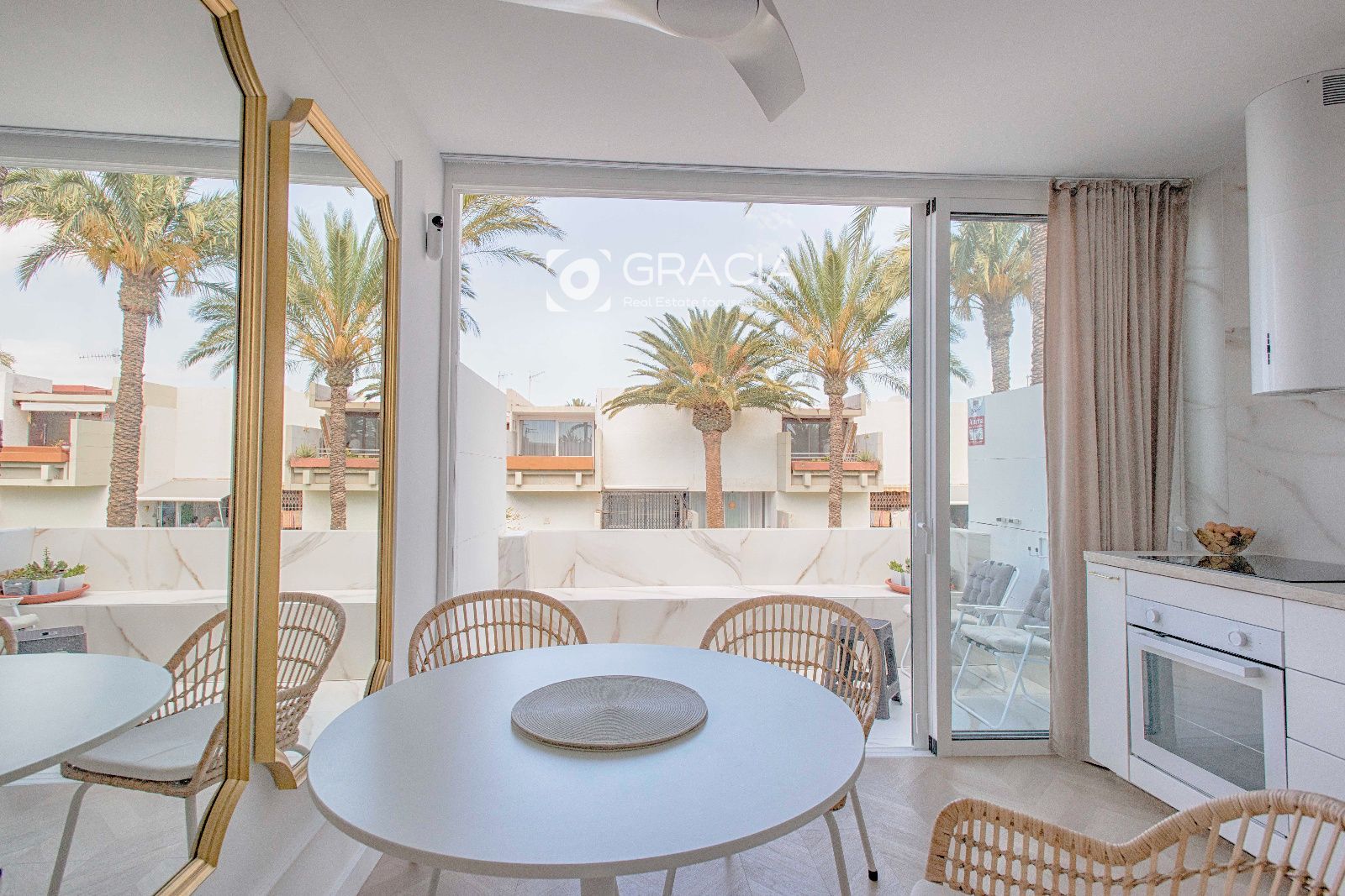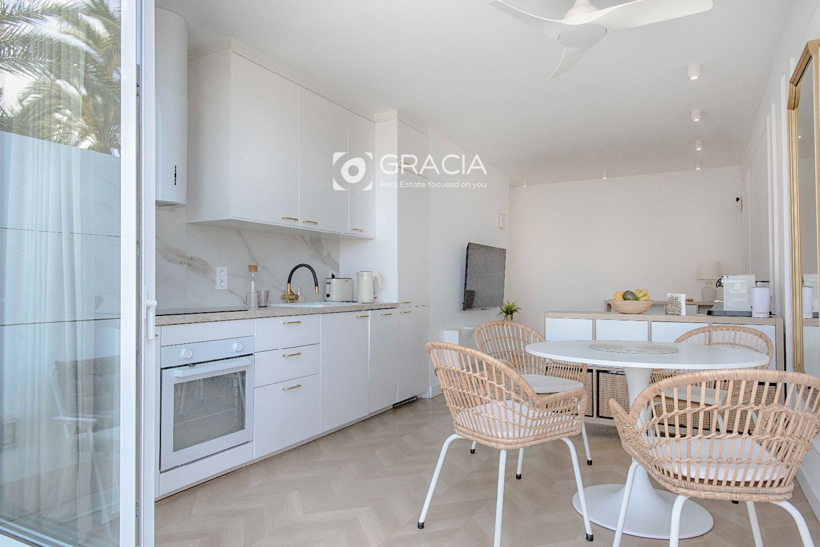 El Apartamento consta de 1 dormitorio con armario amplio y funcional, un cuarto de baño con ducha con plato a nivel de suelo, espacio para lavadora y calefactor y ventana para ventilación y luminosidad. Amplio salón comedor con terraza exterior, bien separado en dos espacios diferentes, con muchisima luz y una decoración moderna y práctica.