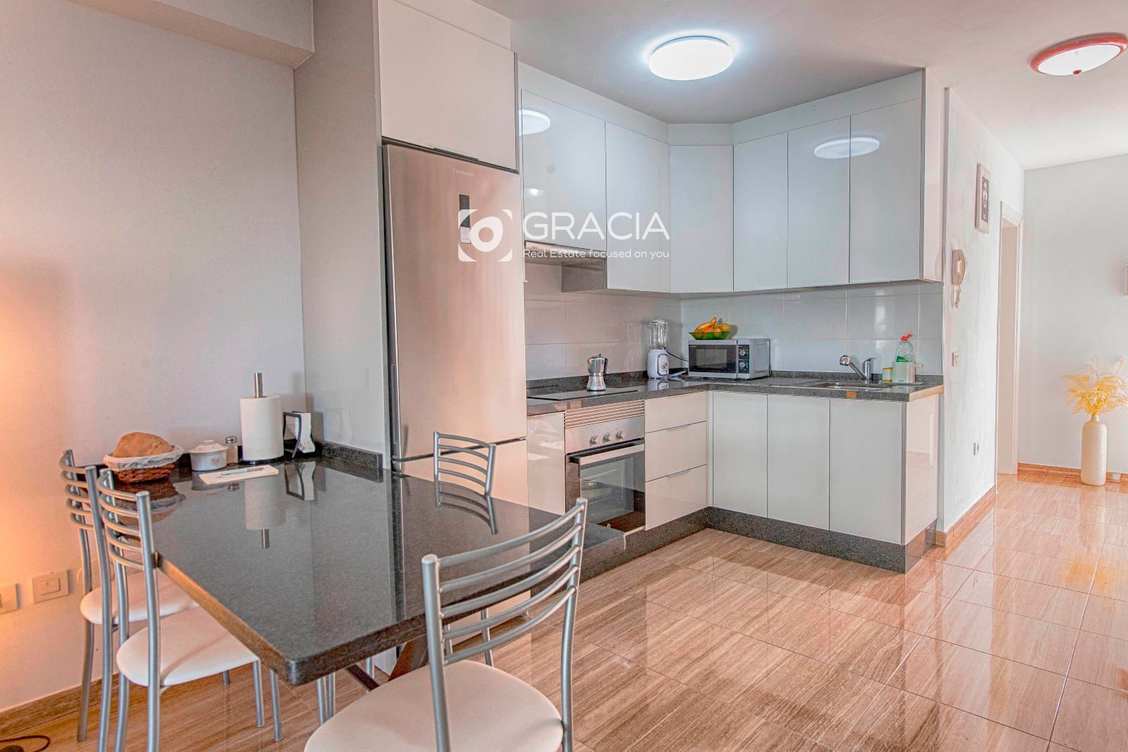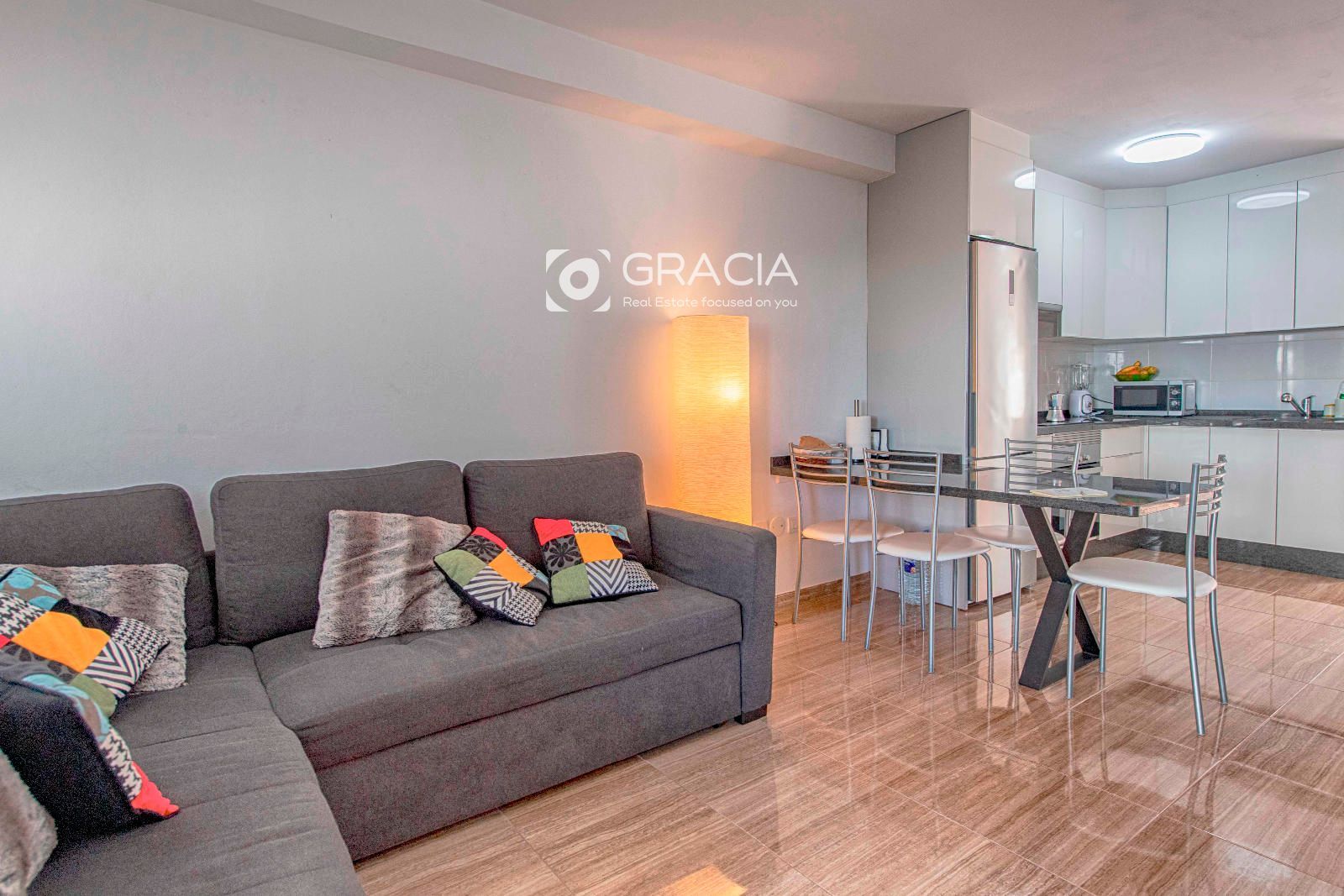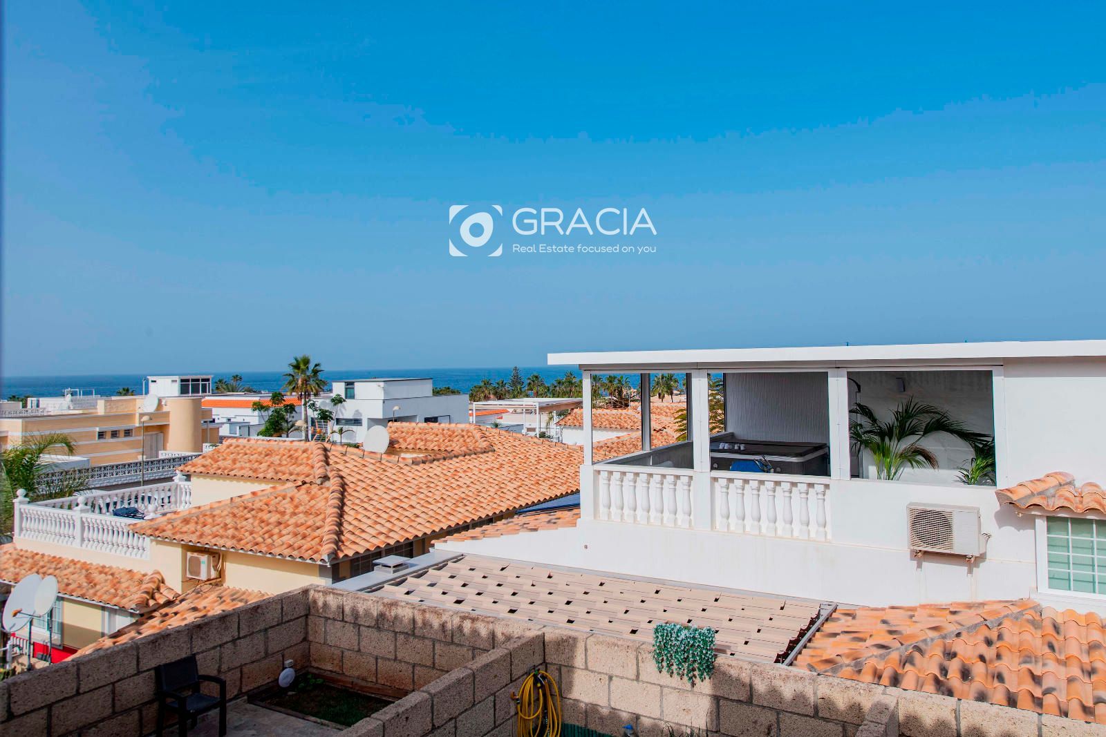 Ponemos a la venta un Adosado Duplex ubicado en una de las principales avenidas de El Palm-Mar, muy próximo a la zona de comercio y restauración, está renovado recientemente, perfecto para entrar a vivir, se vende con los muebles principales de la propiedad. La entrada principal tiene una pequeña terraza y la propiedad se distribuye en dos plantas. En la primera planta se encuentra el salón comedor y cocina americana con acceso directo a una amplia terraza, con parte techada a modo cenador, con un toldo recién instalado, espacio ideal para desayunar, almuerzos o momentos en familia. En esta planta encontramos también un cuarto de aseo amplio.
