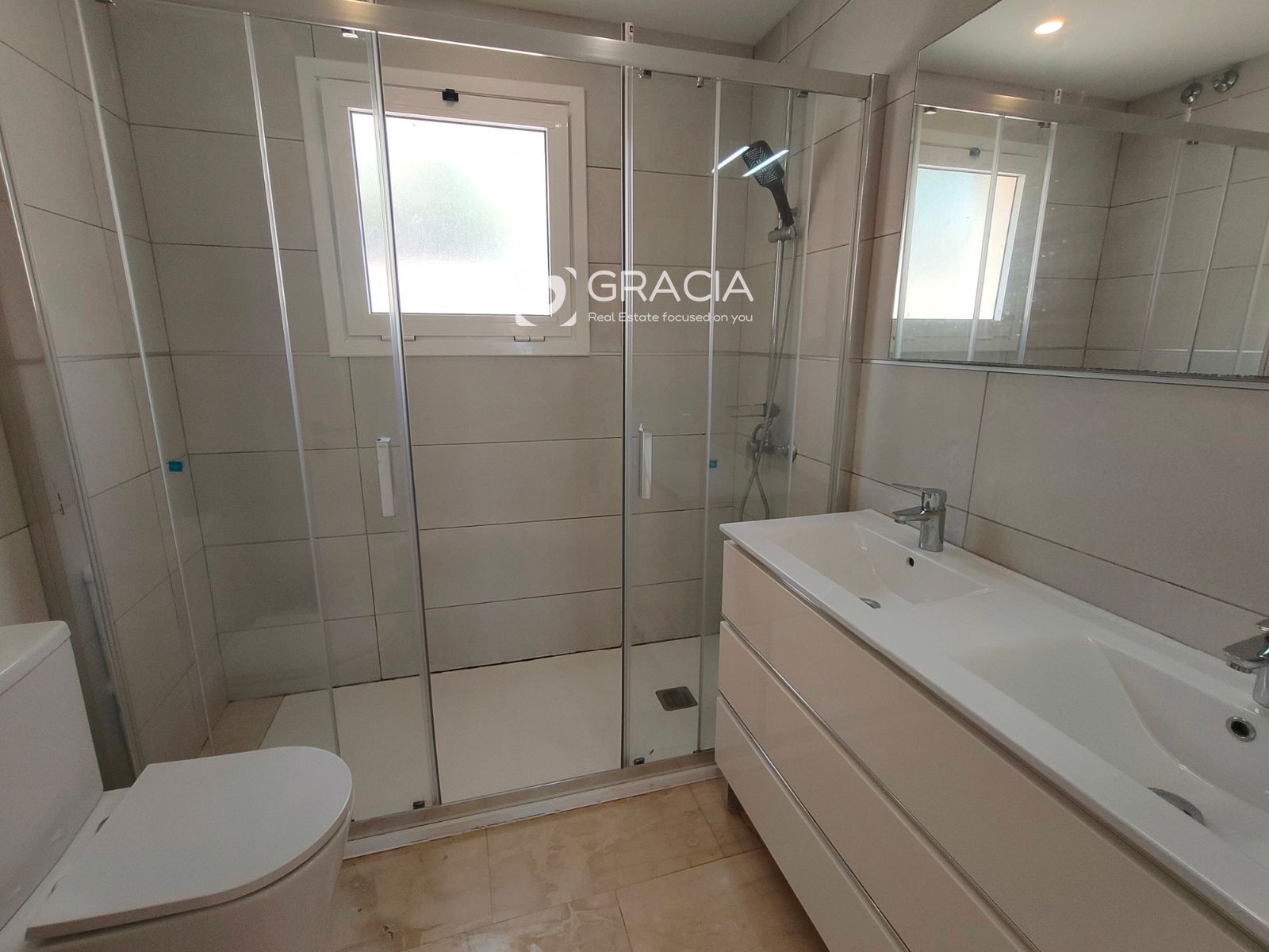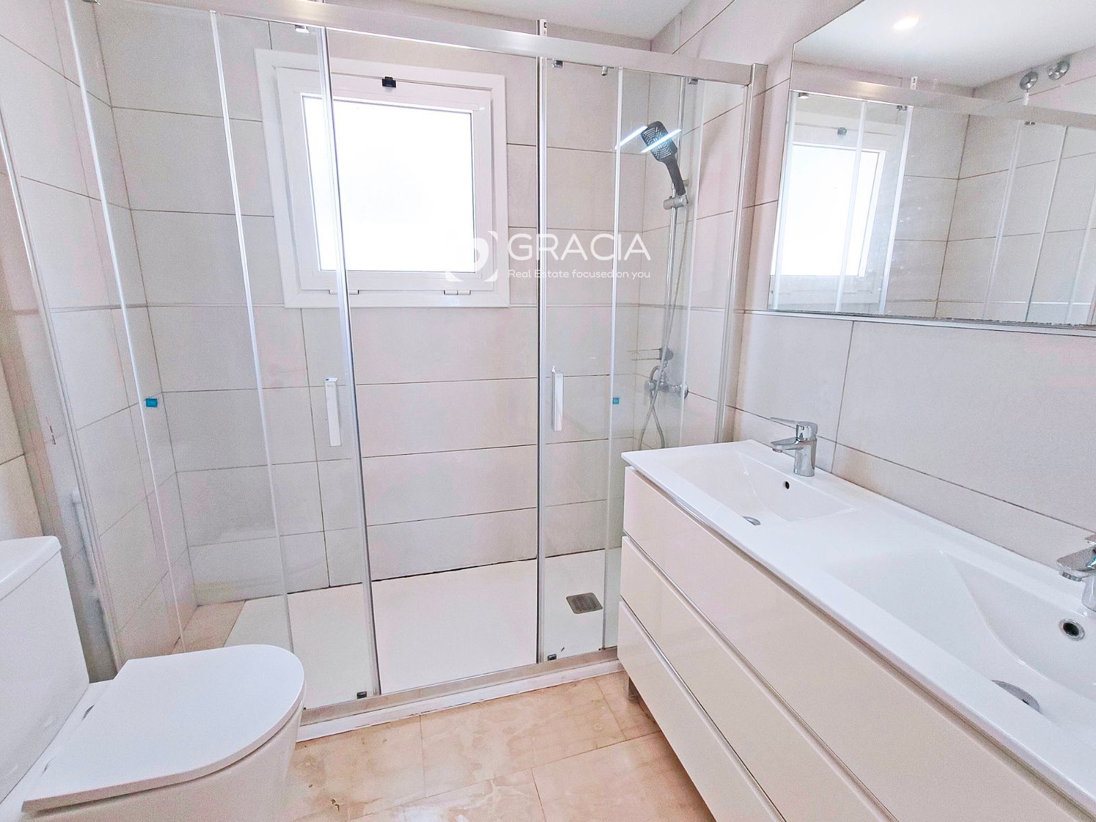En la primera planta, dos dormitorios y un moderno cuarto de ducha, mientras que la planta superior alberga el dormitorio principal con armarios empotrados, baño privado con ducha y una terraza envolvente.