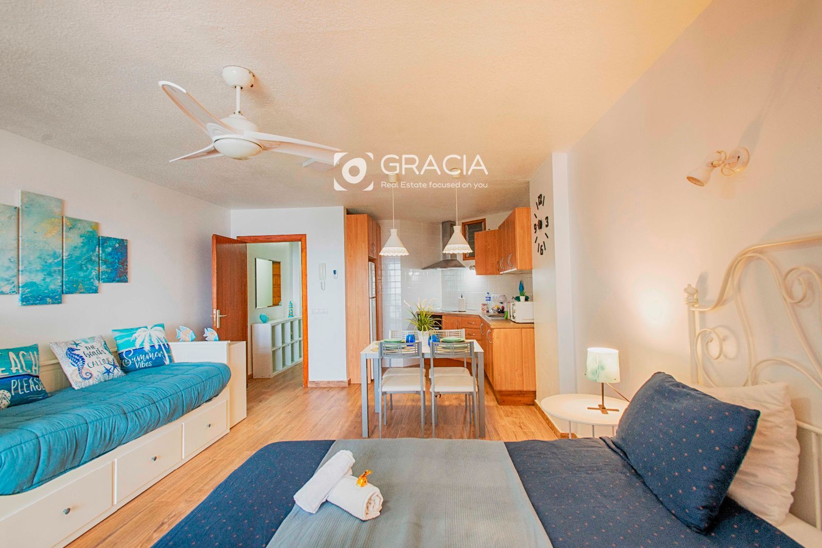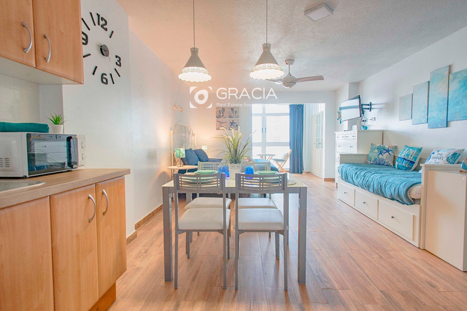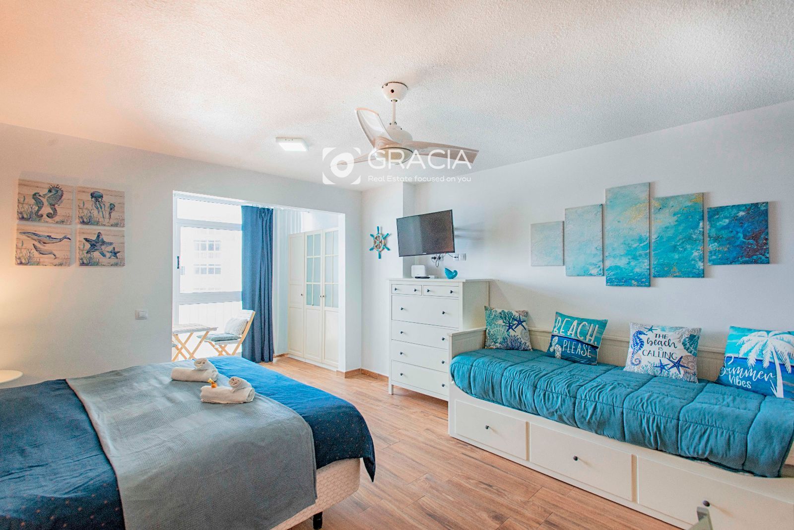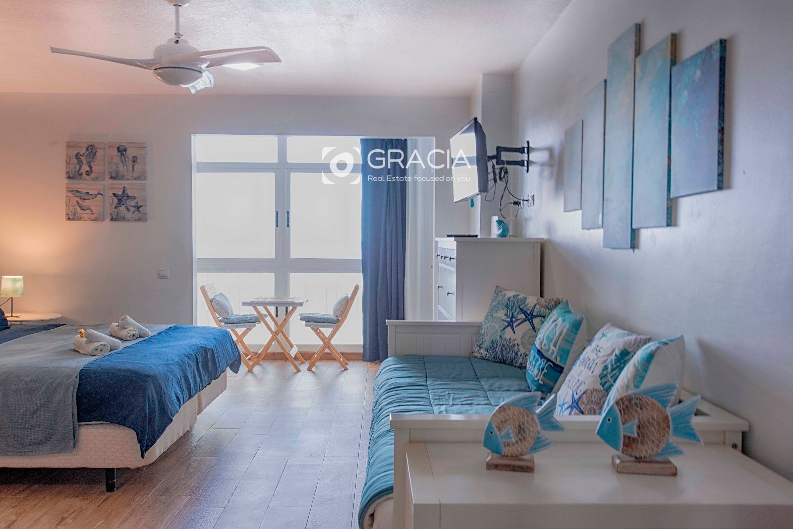 En primera línea de mar, con unas vistas increíbles, al Océano Atlántico. Esta propiedad es un estudio, amplio y bien distribuido, con cocina abierta , un cuarto de baño y terraza acristalada con increíbles vistas al mar. El piso se vende amueblado en perfecto estado de conservación , listo para entrar a vivir o para rentar. Actualmente está en alquiler vacacional con unos buenos números ,demostrables. Próximo al apartamento se encuentran las piscinas naturales de mesa de mar de acceso gratuito para bañarse.