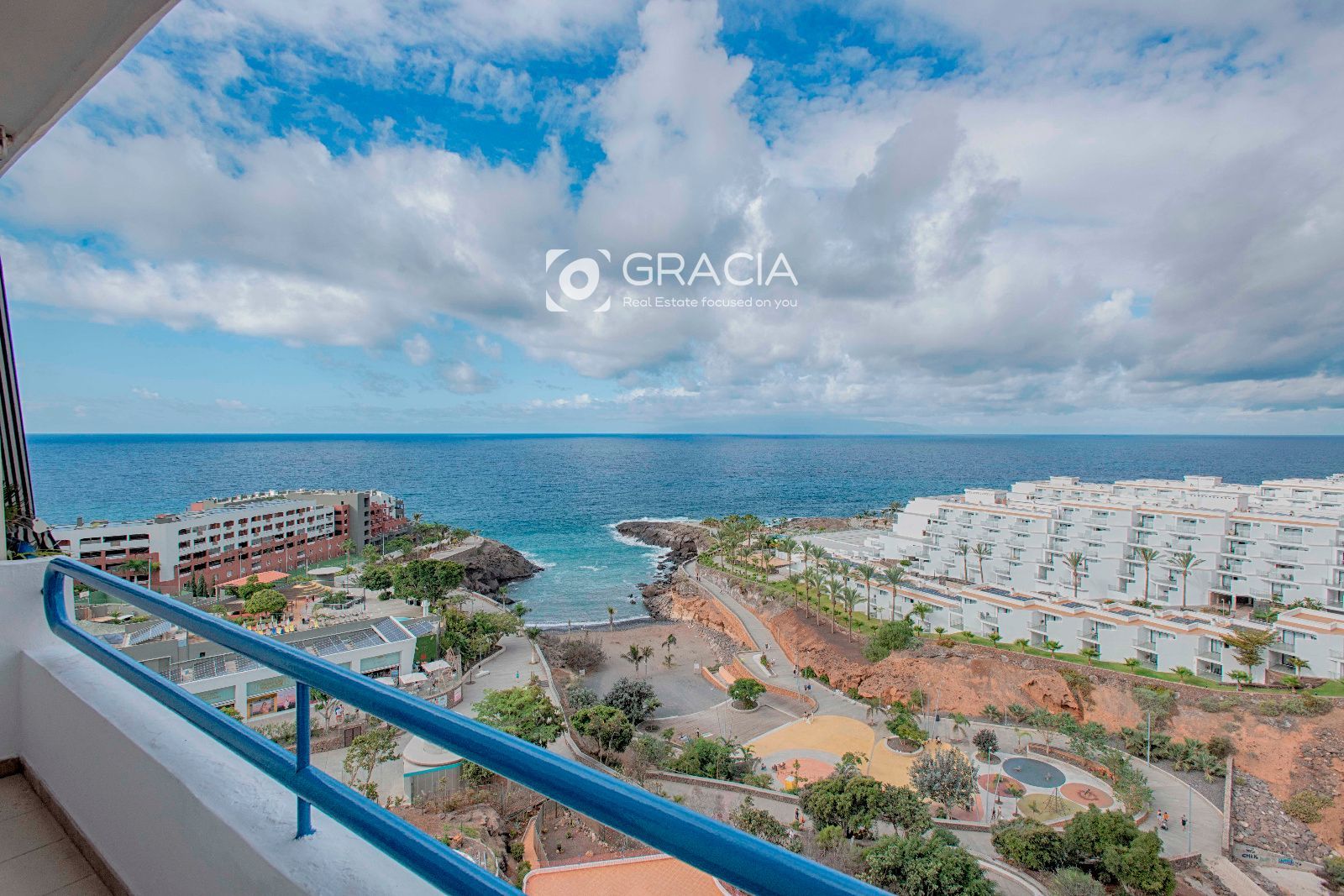 El apartamento se ubica en una planta alta, ofreciendo vistas excepcionales al océano y al encanto único de Tenerife desde las alturas.