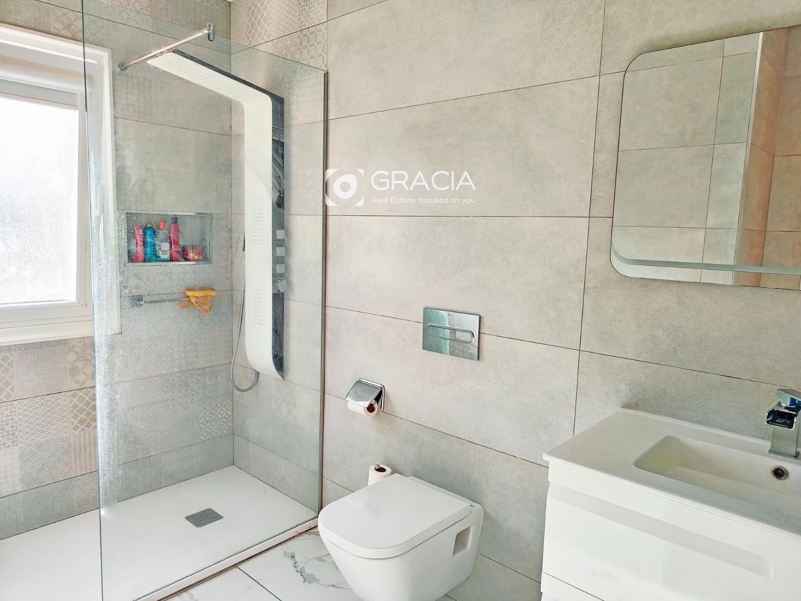 À l'étage supérieur, il y a trois chambres. La chambre principale dispose d'une salle de bains attenante récemment rénovée avec douche, placards intégrés et portes donnant sur la terrasse supérieure avec vue sur la montagne et la piscine.