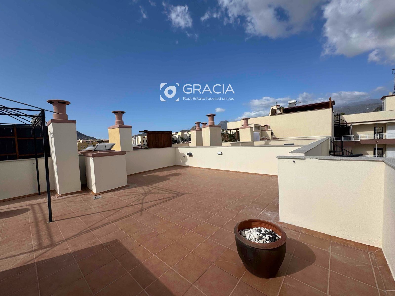 Dalla terrazza, tramite una scala a chiocciola, si accede alla terrazza superiore, un tetto privato, molto riservato e con vista panoramica sul mare, uno spazio dove creare una zona relax, ecc.