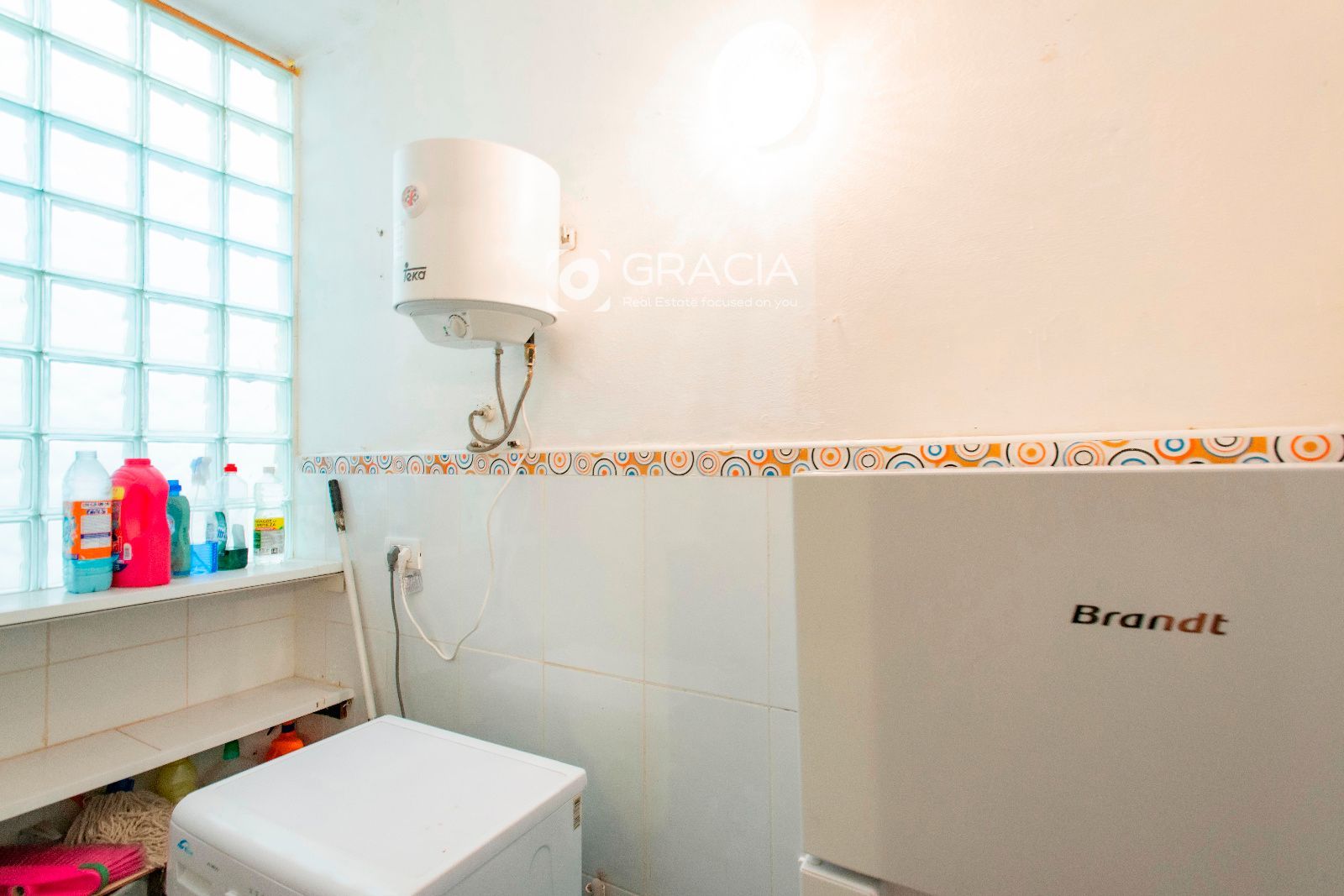 Interessant appartement met twee slaapkamers, beide aan de buitenkant met ramen en kasten. Een ruime woonkamer en een grote open keuken voor wie van koken houdt en daar ruimte voor nodig heeft. Grenzend aan de keuken is er een afgesloten ruimte, zeer praktisch voor opslag of voor de was, wasmachine enz.